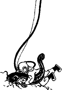 А я опять остался один... Который теперь час? Не узнать под водой времени. Мне кажется, прошло уже часов двенадцать. Воды в костюме много. Коченею. Принялся чечетку свинцовыми подметками дробить, не от веселья, конечно. Плясал-плясал, уже ног не поднять. Вверх стал поглядывать, не идет ли помощь. Наконец вижу: приближаются из водяного тумана две знакомые подметки, колышутся обитые красной медью носки...