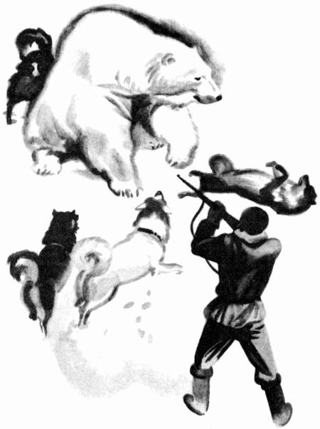 Шевелящийся снег остановил зверя. Выскочившие из сугробов собаки пошли, не колеблясь, на медведя. Несколько лаек бросились в обход, Фрам и Пират двинулись на него прямо.