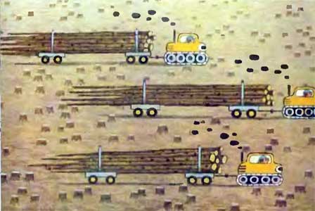 Только друзья пришли в себя, как загромыхали новые машины. Они приехали, чтобы отвезти срубленные деревья.