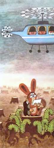 Друзья однако не двинулись с места, а на документ даже не взглянули. Человек положил бумагу на пень и вернулся к остальным. Они уже ждали его у трапа. Вертолет улетел, и только тогда наши приятели начали с любопытством рассматривать бумажку, исчирканную всякими там буквами и опечатанную всякими печатями. Они вертели бумагу в лапках и хмурились, с недоверием разглядывая непонятные каракули и ничего не значащие для них печати.