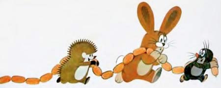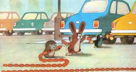 — Надо распределить работу, — решил Крот. — Так у нас быстрее получится. Ты, Заяц, шпекачки отрывай, ты, Ёжик, подавай, а я буду выхлопные трубы затыкать.