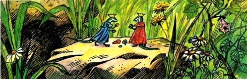 Но больше всего любят юные ящерицы тайком вылезти наверх, на землю, и полюбоваться зеленым лесом, голубым небом, погреться под лучами настоящего солнца. Королева им это строго-настрого запрещает. Мало ли, что может случиться наверху с беззащитными крошками! Но дети есть дети! И непоседы при каждом удобном случае удирают наверх. Прихватят с собой несколько блестящих камушков и играют ими в траве. Птицы поют, ветерок налетает! До чего хорошо!