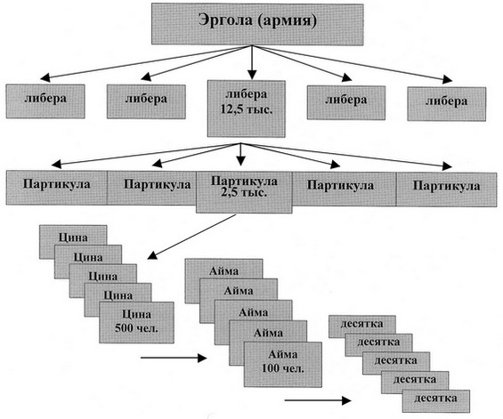 Эргола (армия) — обычно от 50 до 80 тыс. человек.