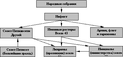 Совет Пятидесяти Друзей — законодательный орган управления страной. Подчиняется Инфекту, а по ряду вопросов — народным собраниям. В отсутствие Инфекта или в случае его смерти управляет страной самостоятельно. Набирается Инфектом и утверждается народными собраниями и Советом Пятисот.
