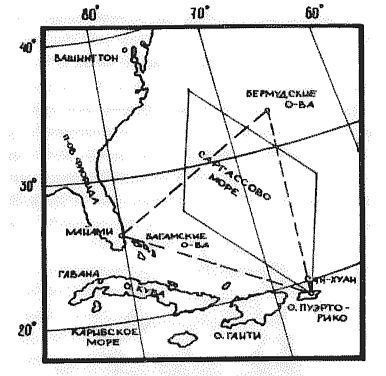 Что такое Бермудский треугольник? Это район земного шара (рис. 1), представляющий собой гипотетический треугольник, вершинами которого являются Бермудские острова, Пуэрто-Рико и Майами на Флориде (или южный мыс Флориды). Эта зона имеет зловещую репутацию, так как в ней происходят различные необъяснимые и драматические происшествия (рис. 2). Одно из таких устрашающих явлений — это внезапное появление так называемых Летучих голландцев.