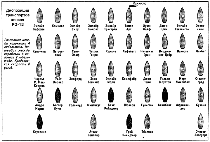 «Каталина» в ответ передала тревожную новость, что в 38 милях к северу видела на поверхности подводную лодку. Вскоре были получены сообщения о новых контактах, это убедило командира эскорта в том, что 4 или 5 немецких лодок развернуты поперек линии курса конвоя. Обнаружить противника в самом начале операции было крайне неприятно, особенно потому, что погода была очень плохой. Позднее стало известно, что немцы развернули подводные лодки в самом начале месяца, ожидая выхода PQ-18.