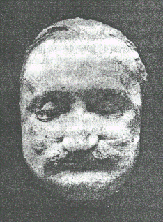 Еще я видел фотографию его посмертной маски. Когда она была сделана, Госуорт уже успел отказаться от возраста и от подвластности течению времени, но перед этим был человеком в возрасте пятидесяти восьми лет. Маску снимал Хью Олафф де Вет 23 сентября 1970 года, в тот же самый день или на другой день после того, как Госуорт умер в Лондоне, в том же районе Кенсингтон, где родился. Его старый друг по службе в Каире, сэр Джон Уоллер, поднес эту маску в дар Poetry Society, [37] но этому доказательству дружбы суждено было стать посмертным, оно слишком запоздало. У того, кто был Джоном Госуортом и Теренсом Айаном Фиттоном Армстронгом, и Орфеем Скраннэлом, и Иоанном I, королем Редонды, а также иногда просто Фиттоном Армстронгом, или Дж. Г., или просто Г., глаза теперь закрыты, и взгляда нет никакого. Складки под глазами превратились в мешки, морщины на лбу размылись (череп словно раздулся), и такое впечатление, будто ресницы у него стали гуще, – возможно, просто потому, что веки опустились навсегда. Шевелюра кажется белой (может быть, потому, что маска отлита в гипсе) и немного отступила назад по сравнению с сороковыми годами, временем, когда его молодость кончилась и когда он воевал против Afrika Corps. [38] Усы как будто стали гуще, но свесились вниз, это колючие усы и в то же время обвислые, усы отставного вояки, которому надоело их подкручивать. Нос разросся, раздался вширь, щеки обмякли, лицо отекло, стало одутловатым, унылым. Наметился двойной подбородок. Лицо умершего, сомневаться нечего.