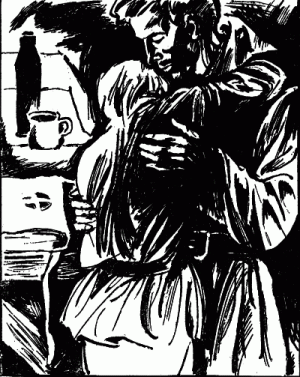 Тальянов уселся на полу, прислонясь к стене. Он свернул, выкурил цигарку. Наконец-то Незабудка отвлеклась от своих милосердных хлопот и очутилась рядом. Она стала на колени, чтобы быть ближе и чтобы ему не пришлось вставать.