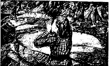 Напрягая все свое внимание, мальчик пробирался узкими щелями, ощупывая перед собой путь, и наконец очутился на ровном песчаном поле.