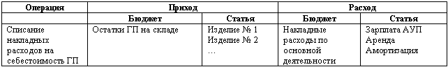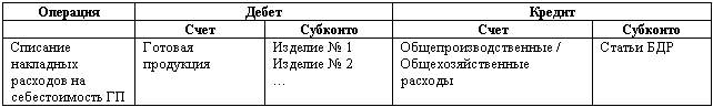 Пример: Списание накладных расходов на себестоимость продукции: