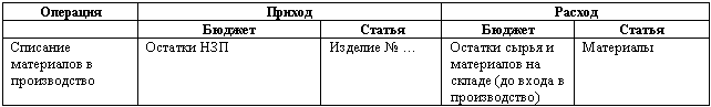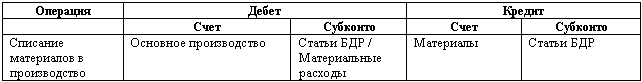 Пример: Списание материалов в производство: