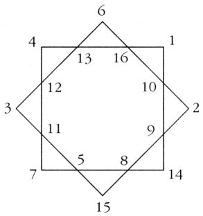 На нижней стороне плитки обнаружилась еще одна звезда, состоящая из квадратов, углы которых служили ей лучами. Среди четких линий были расставлены числа, а под рисунком помещались строки, обожженные для лучшего прочтения.